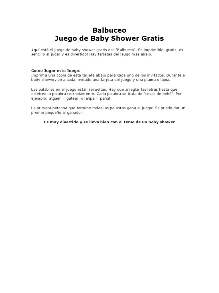 Precio habitual 0.00 usd ahorrar 0.00 usd. Usted tambien puede conseguir juegos para baby shower para imprimir ya sea muy economicos o incluso gratis, asi que no se preocupe. Estas son algunas ideas de juegos de baby shower no tradicionales. Para un baby shower más activo, coloca biberones en forma de triángulo con un poco de arena. Descarga 7 juegos, sopa de letras, laberinto, crucigrama, bebé en idiomas, palabras revueltas listos para imprimir en formato pdf.